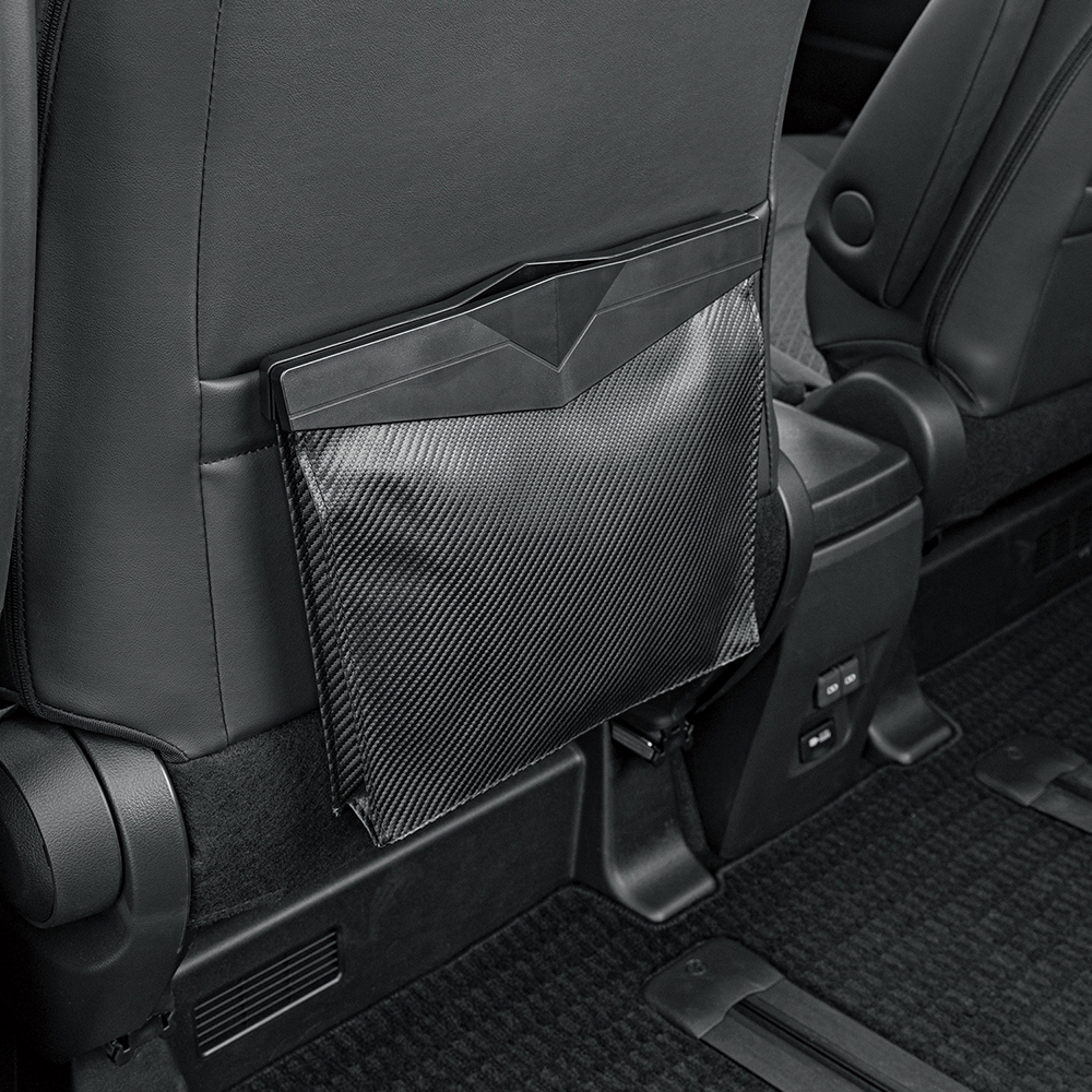 開口部はマグネット式を採用し、走行時の不用意な開きを抑えつつ、片手で容易に開閉が可能です。内部にはゴミ袋固定フックを装備しており、袋のズレを防止して交換作業を簡略化します。また、ゴミ箱としての利用以外に、タブレットやガイドブック等の収納ケースとしても活用可能です。