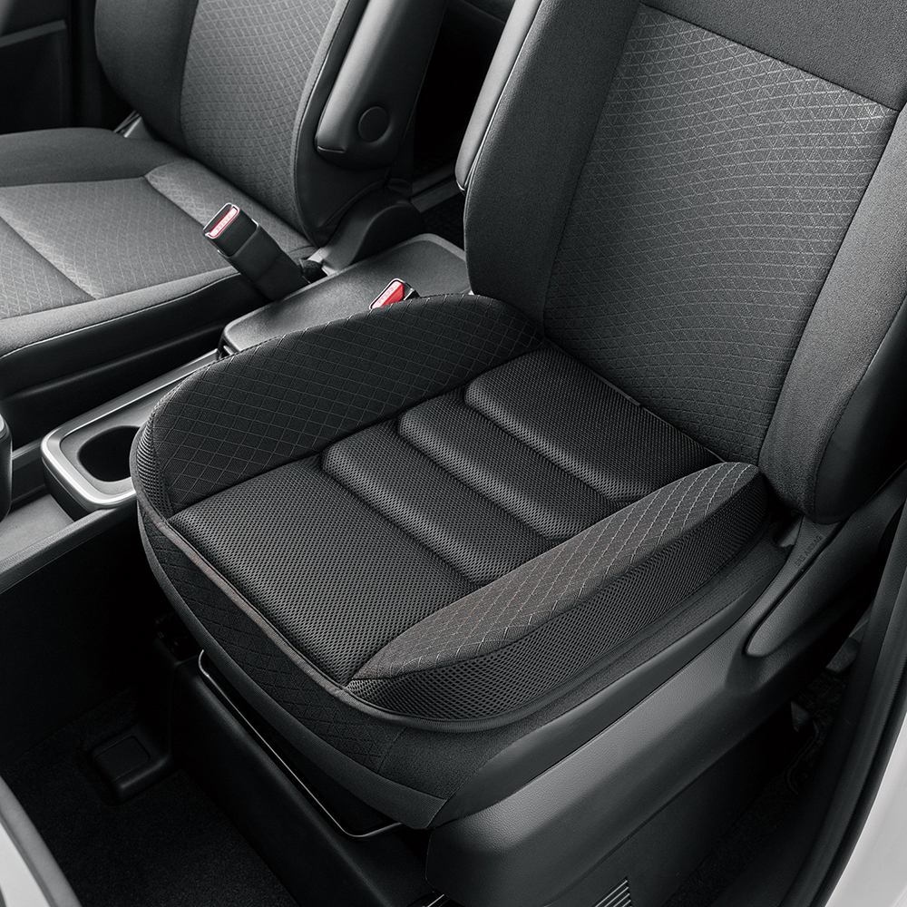 中央部からサポート部分にかけて全面にメッシュ素材を採用し、使用時の蒸れを効果的に解消。サポート部分のキルティング加工が、車内にスタイリッシュな印象を与えます。
