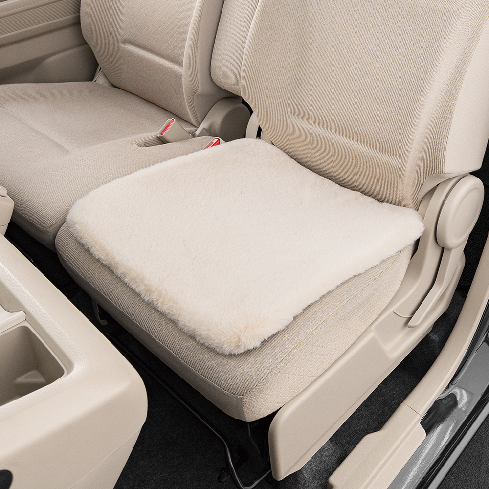 表地に採用した毛足15mmのフェイクファーはしっとりとした質感に加え、ウサギの毛並みのようにきめ細やかでふわっとした肌触り。中材はウレタンフォームで程よい座り心地。ストッパーはついていないので、ソファーやルームチェアにもお使いいただけます。