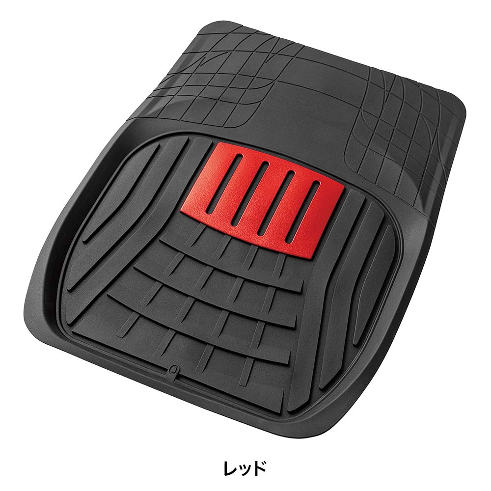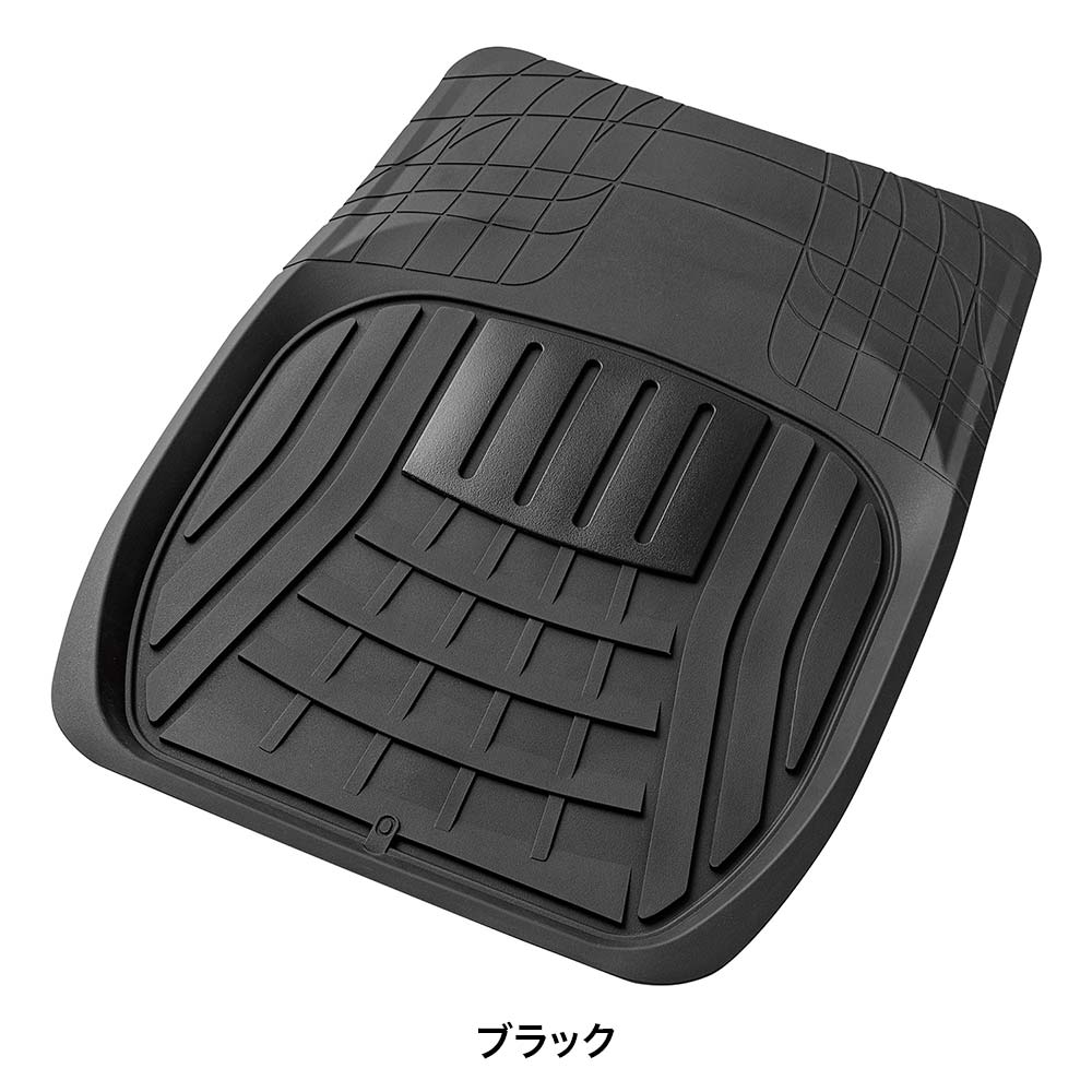 雨や雪、泥汚れを車内のフロアに広げない深底27mmの立体構造を採用。耐久性に優れたラバー素材を使用し、汚れた際は丸洗いが可能なため、メンテナンス性にも優れています。柔軟なラバー素材は加工もしやすく、フロア形状に合わせてカットできるため、オルガンペダル車を含む幅広い車種に取り付け可能です。また、裏面はズレに強い新形状のスパイク加工で別売りのマットフック(6184-10または6185-10)とあわせるとズレの心配も軽減します。